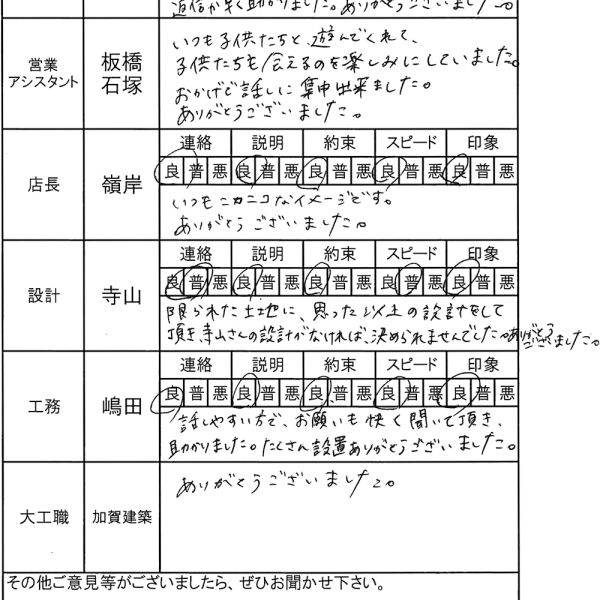 レスポンスが早く、細かい対応も親身に聞いてくれて、すべてのことを安心して任せられました。 桶川市 O様
