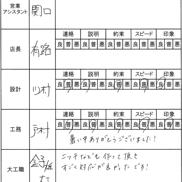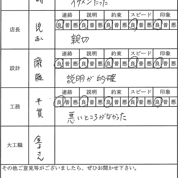 みなさんが優しく親切で、毎回打ち合わせが楽しかったです。 太田市 青木様
