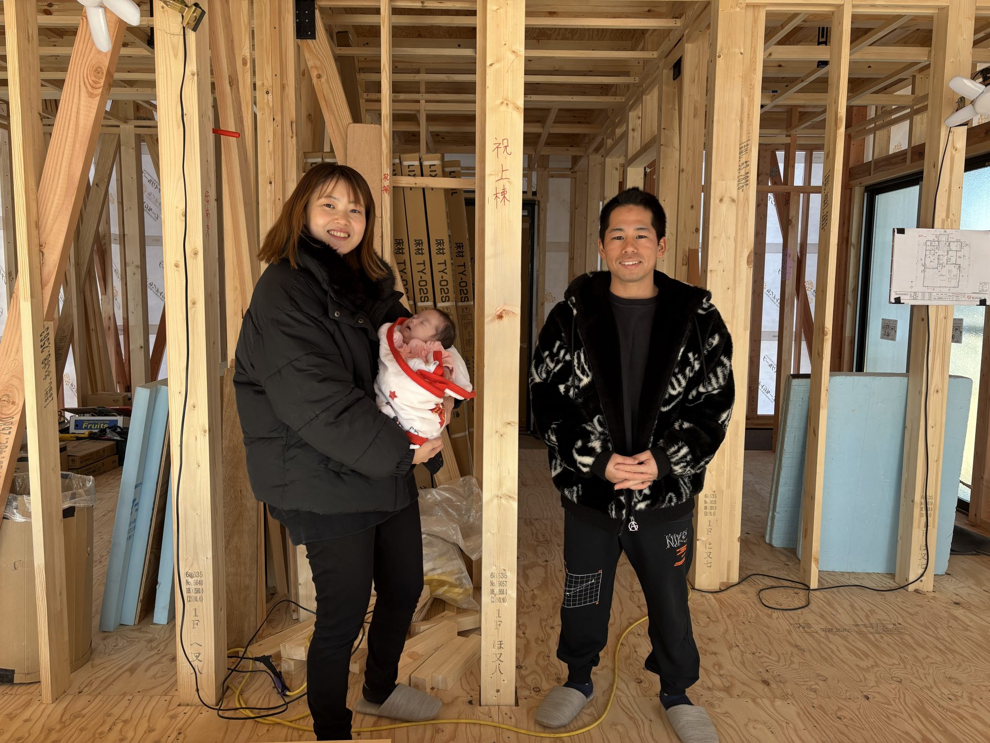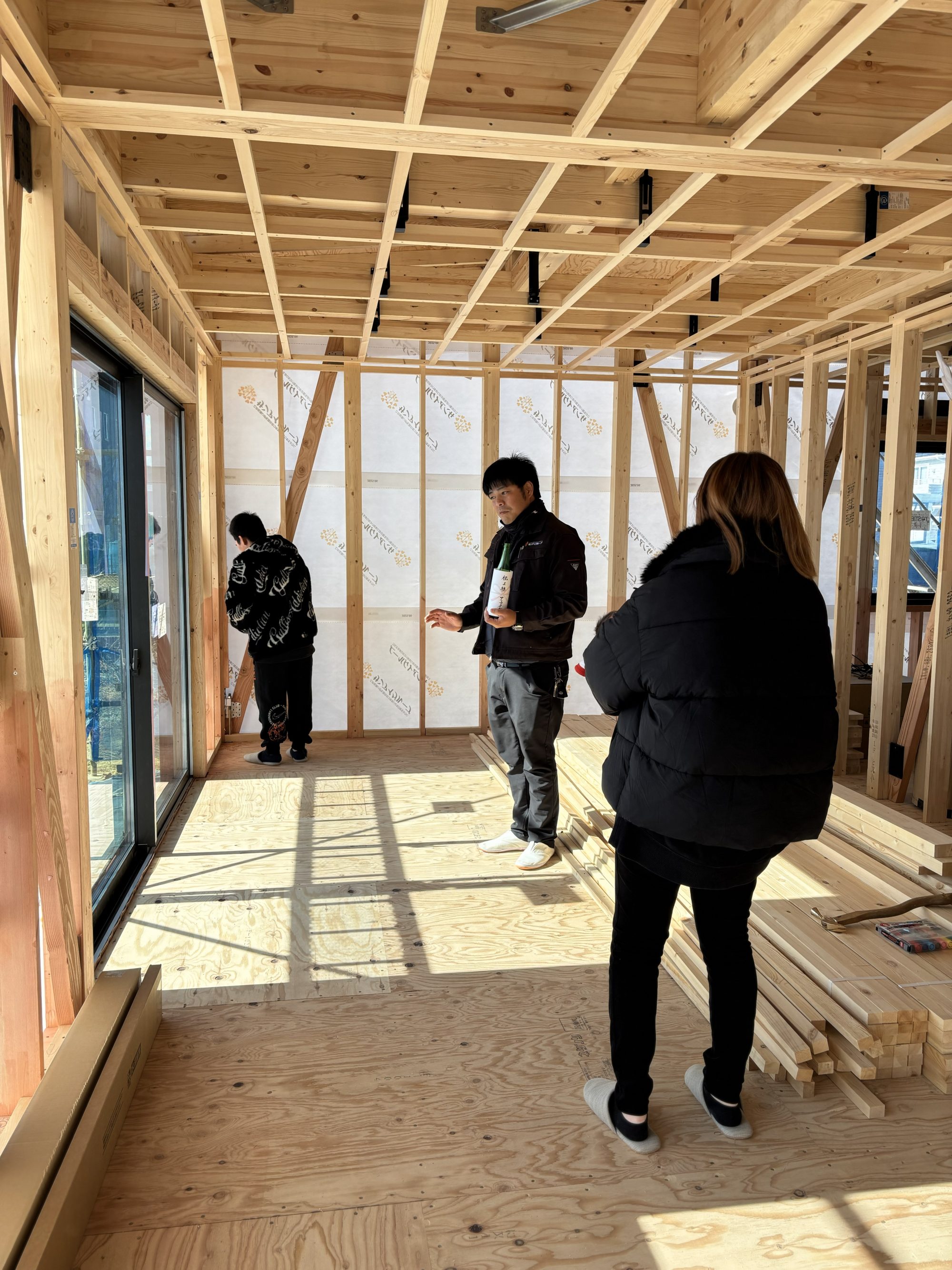 建物の四隅にお清めのお米と塩をまいていただきました!