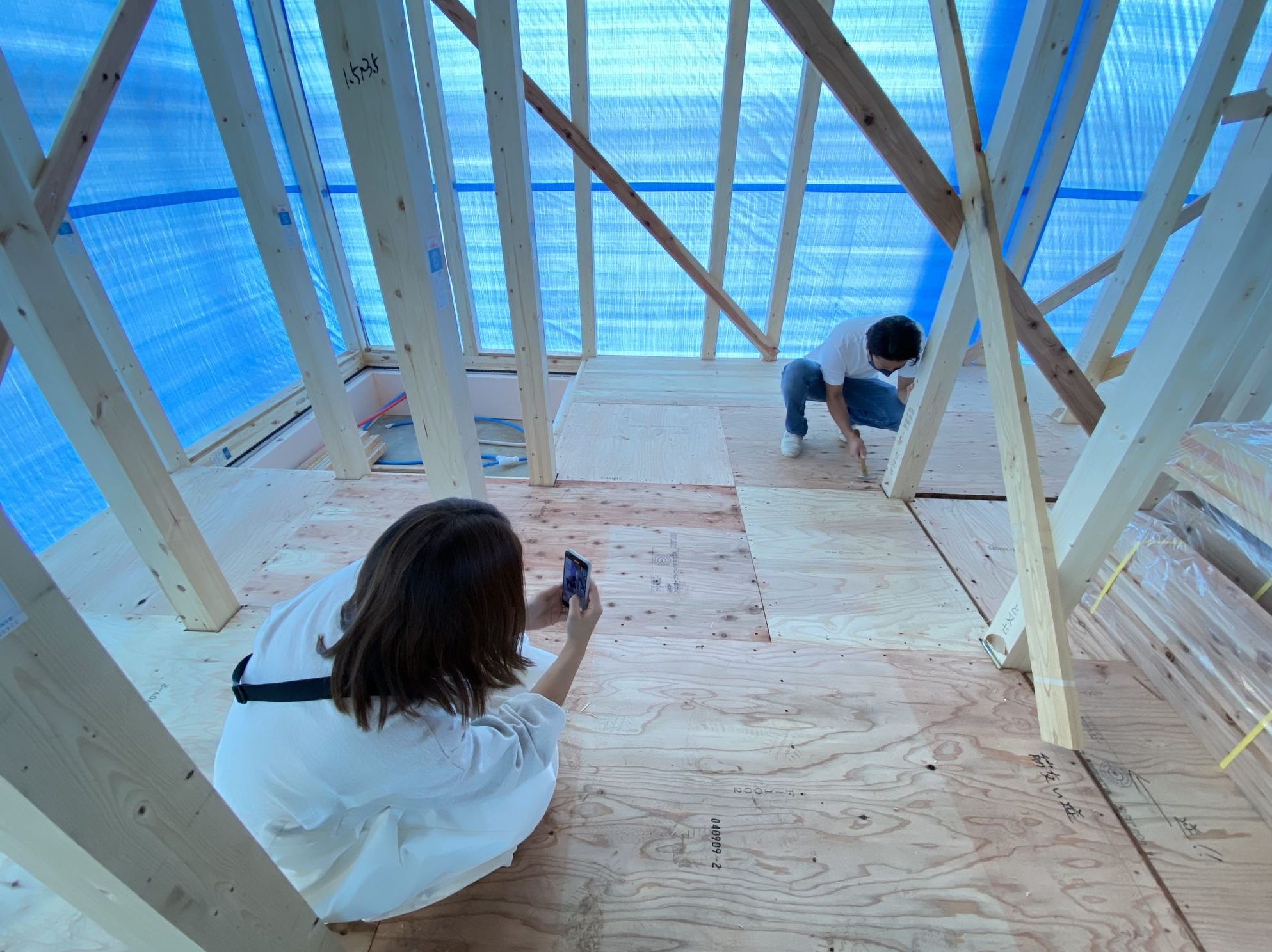上棟したお家の前で記念撮影^^