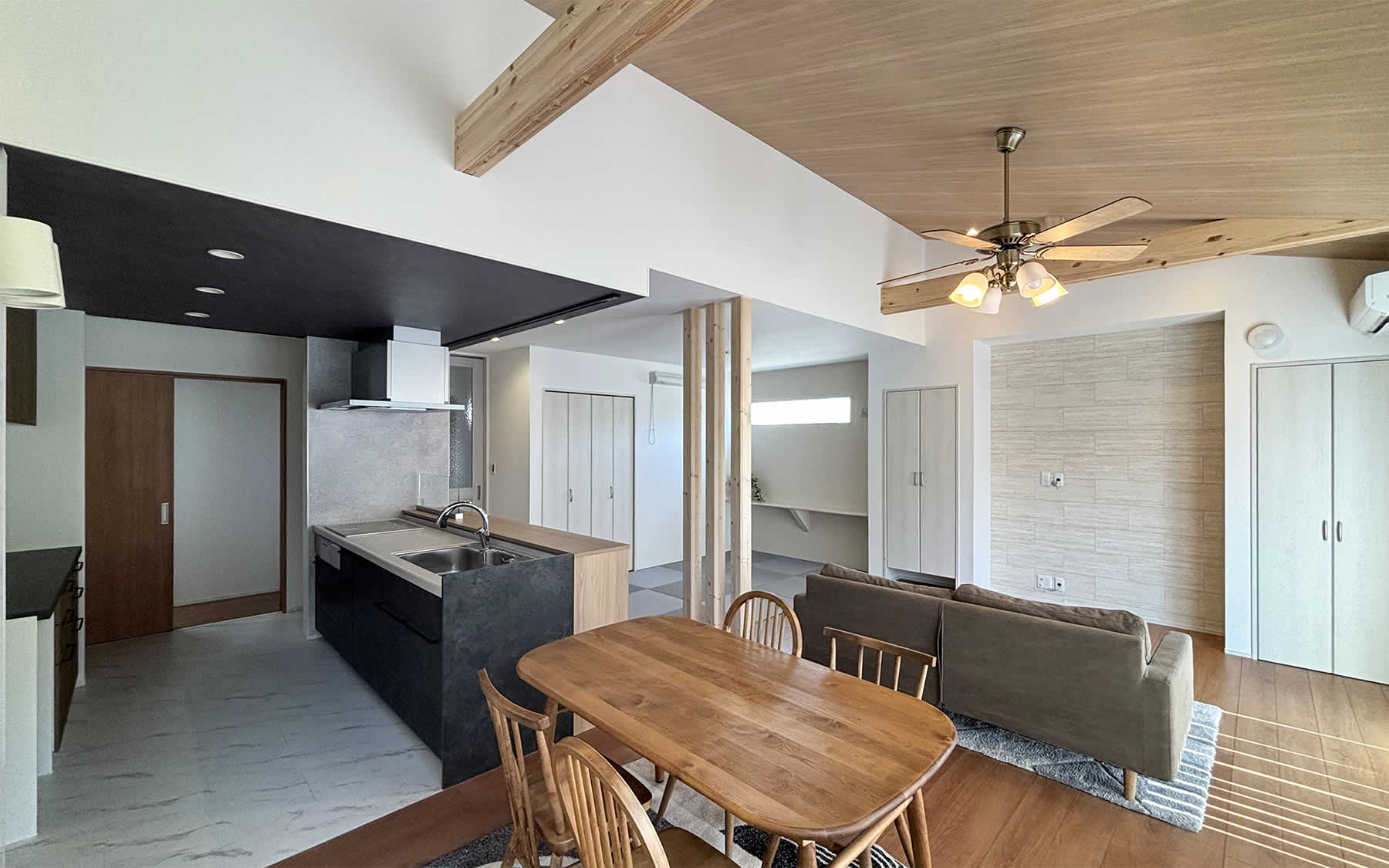 和室とも繋げ、いつでも家族の気配を感じられる間取りです。