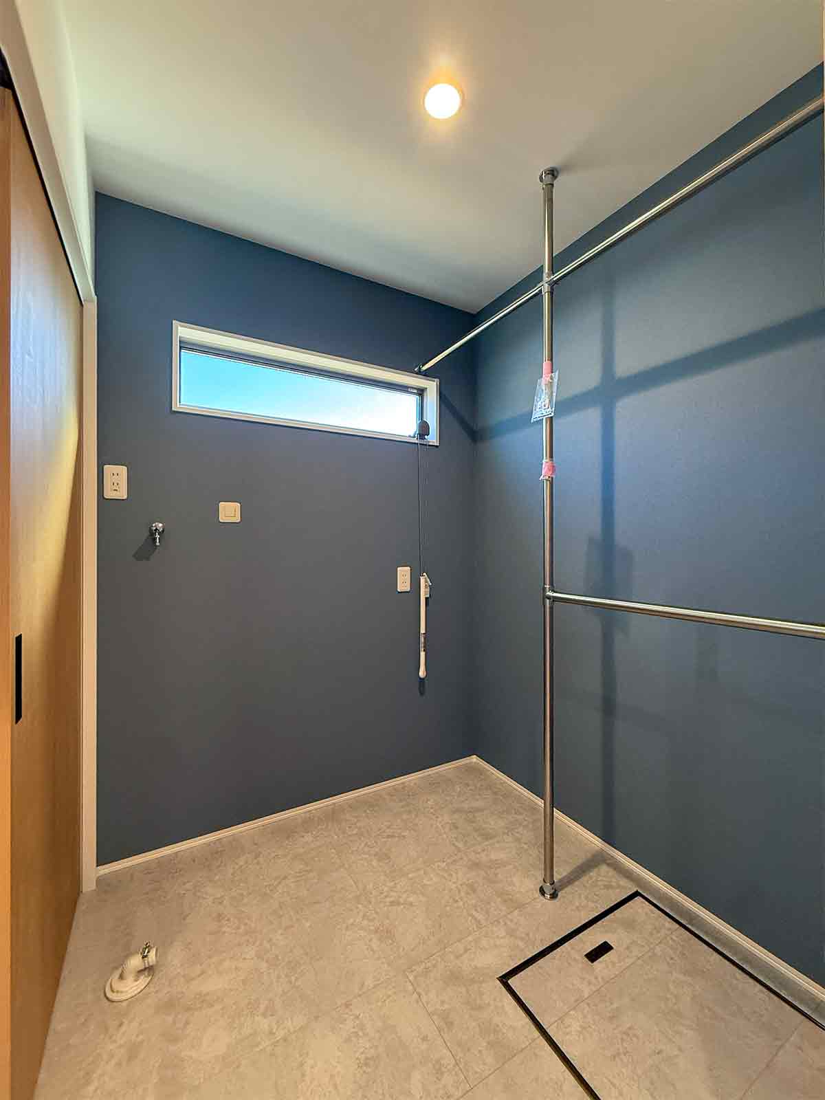 ランドリールームにはパイプを組み合わせいろいろなものを干せます