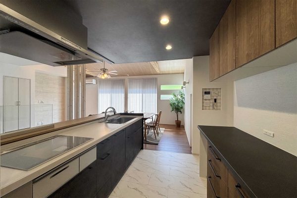 フルフラットキッチンはお部屋全体が見渡せ、家族との会話を楽しみながらお料理できます。