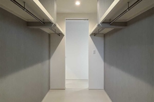 ランドリールームのすぐそばにある大容量のファミリークローゼット。