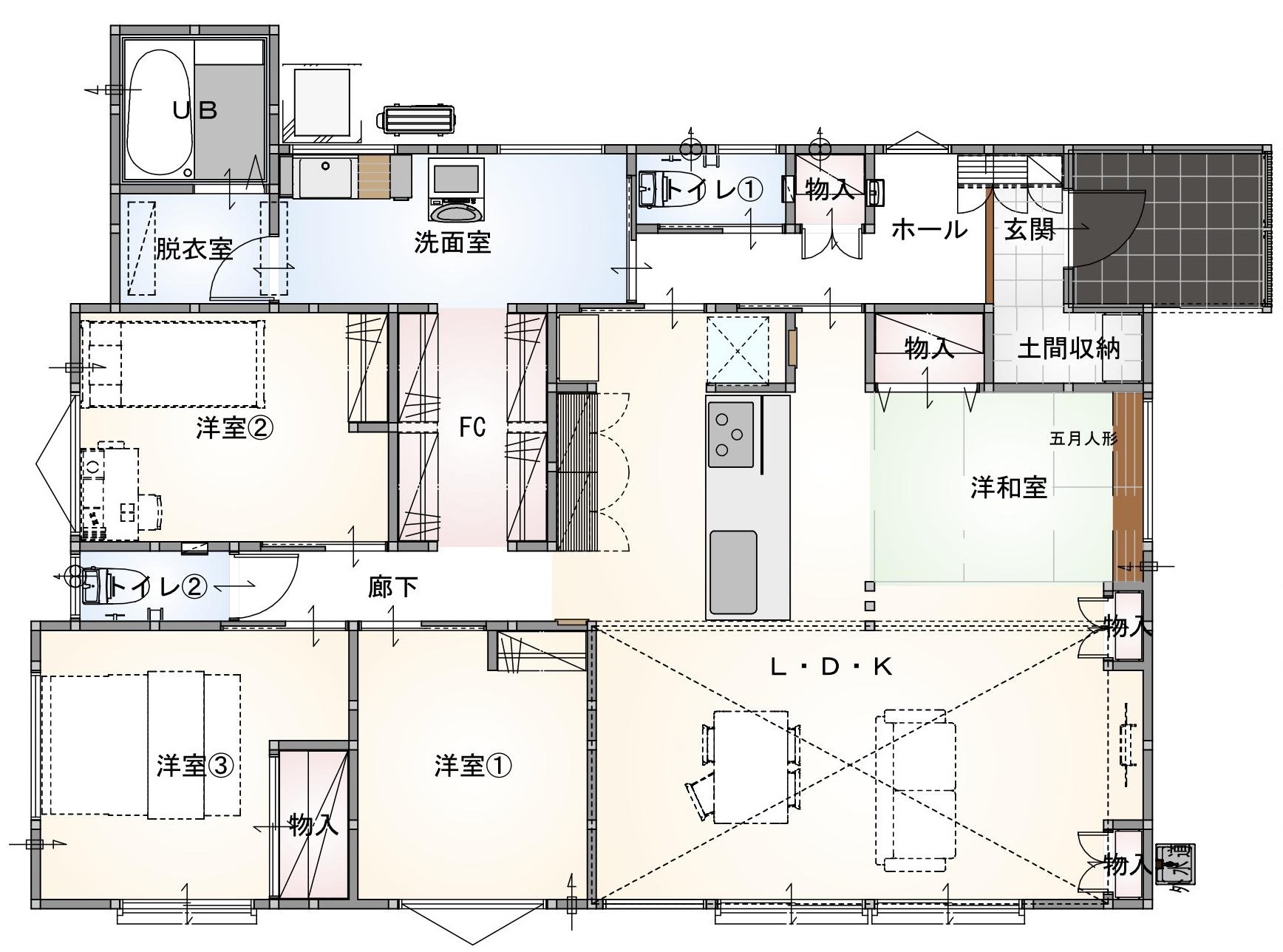 和室にもフラットに繋がり、いつも家族の気配を感じられる間取りです。