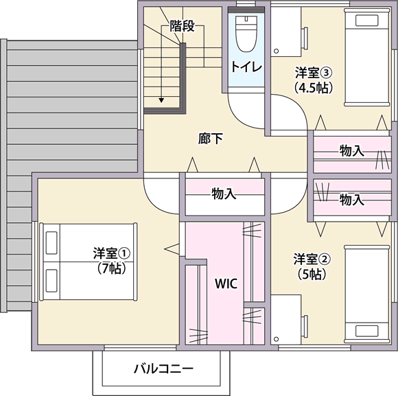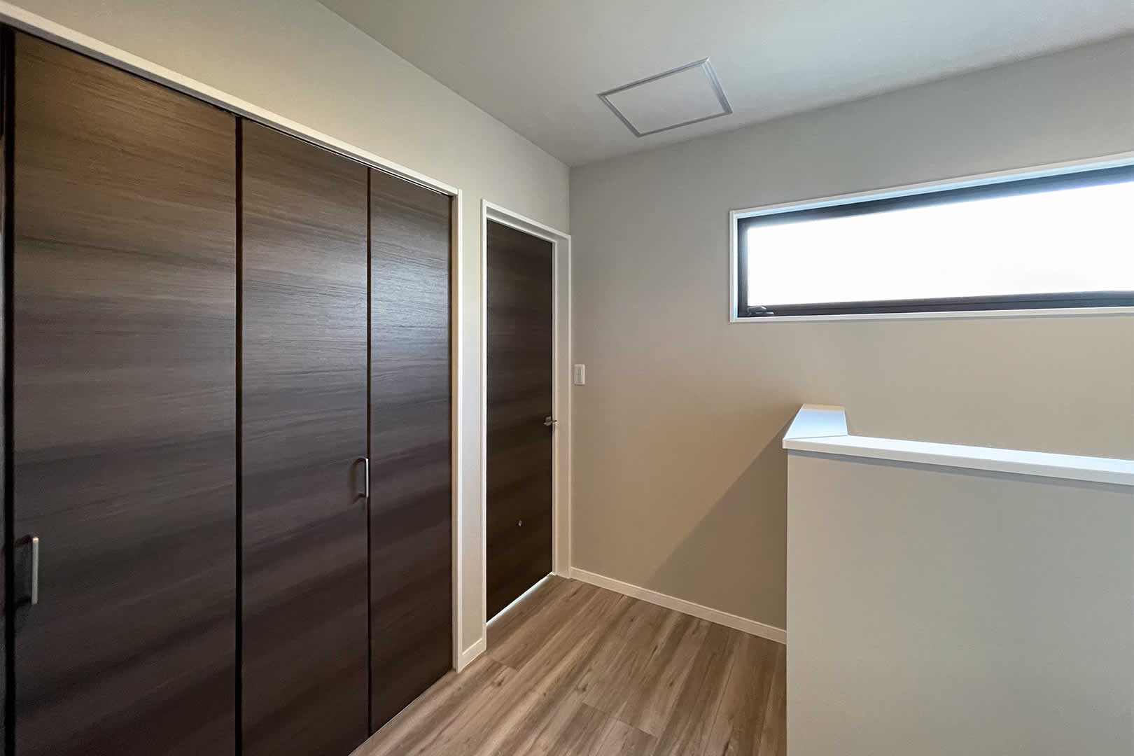 2階の各部屋に収納があるのはもちろん、ホールにも収納があると便利ですよね。季節物の布団や掃除用具など、どこに仕舞うか迷う方が多いです。