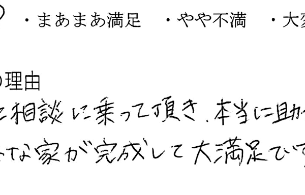 契約後も変わらない対応、少し無理なお願いをしても否定することなく受け止めてくれました。 滑川町 K様