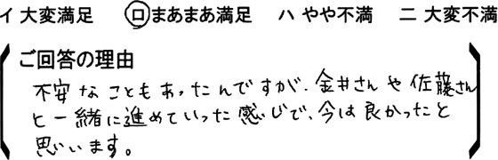 とても話しやすく、何でも相談できました。これからもよろしくお願いします。