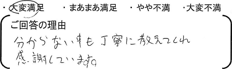 分からない事も丁寧に教えてくれ感謝しています。