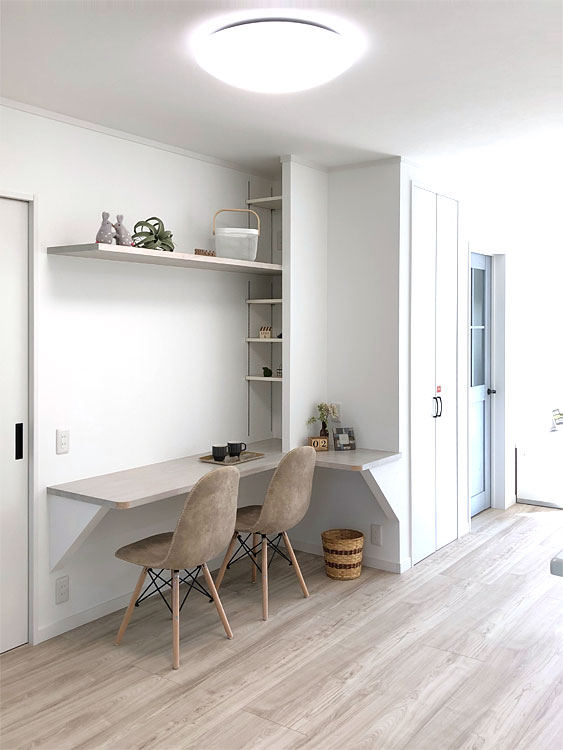 - 何度も打ち合わせをし大変でしたが、徐々に理想の家に近づいて行くのが楽しかったです。また、土地が近隣だったので、行くたびに家が完成に近づいていくのを子どもと一緒に見るのが楽しかったです。
