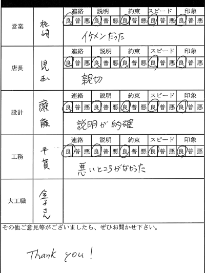 住まいづくり全体を通して当店の対応や印象はいかがでしたか?