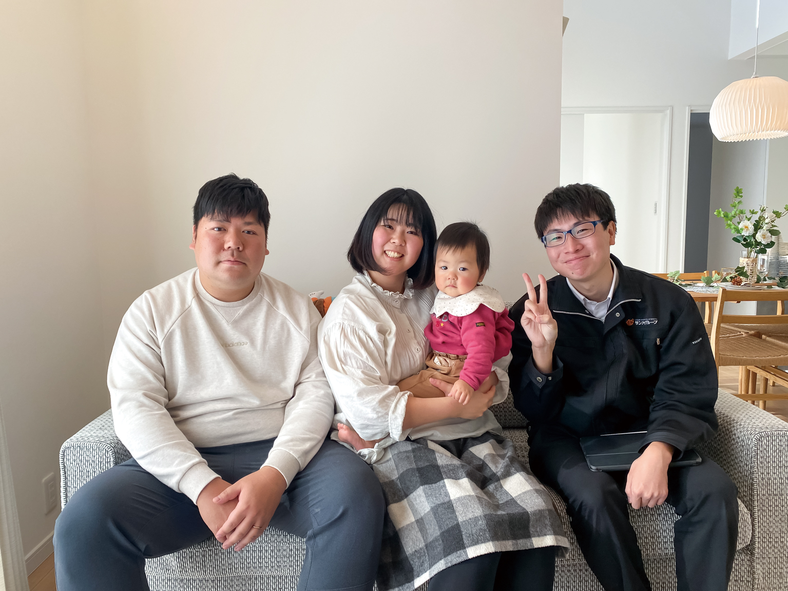 - 主人の仕事の関係で家を買いたい時期と住み始めたい時期があり、サンアイさんはベストのタイミングで家づくりができたので。考えられた家事動線の太田モデルハウスが本当によかった!価格も無理しすぎす、理想のお家が作れると思ったので。打ち合わせ中、まだ赤ちゃんの娘と福本さんが遊んでくれたのもよかった(^^)