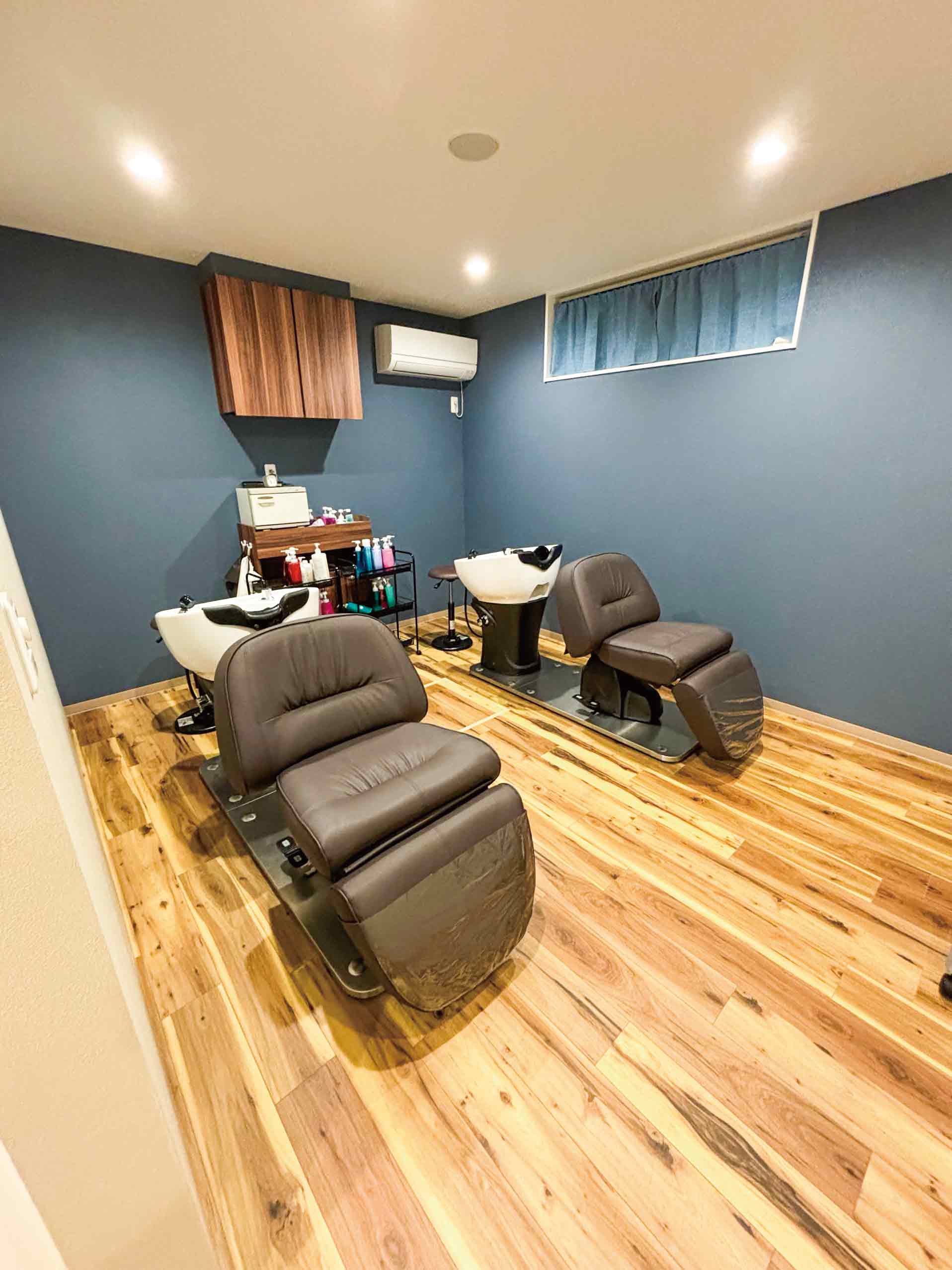 - ご主人:シャンプー空間、ヘッドスパ、リラックスできるクロスもお客様から色合いが落ち着いていて好評!